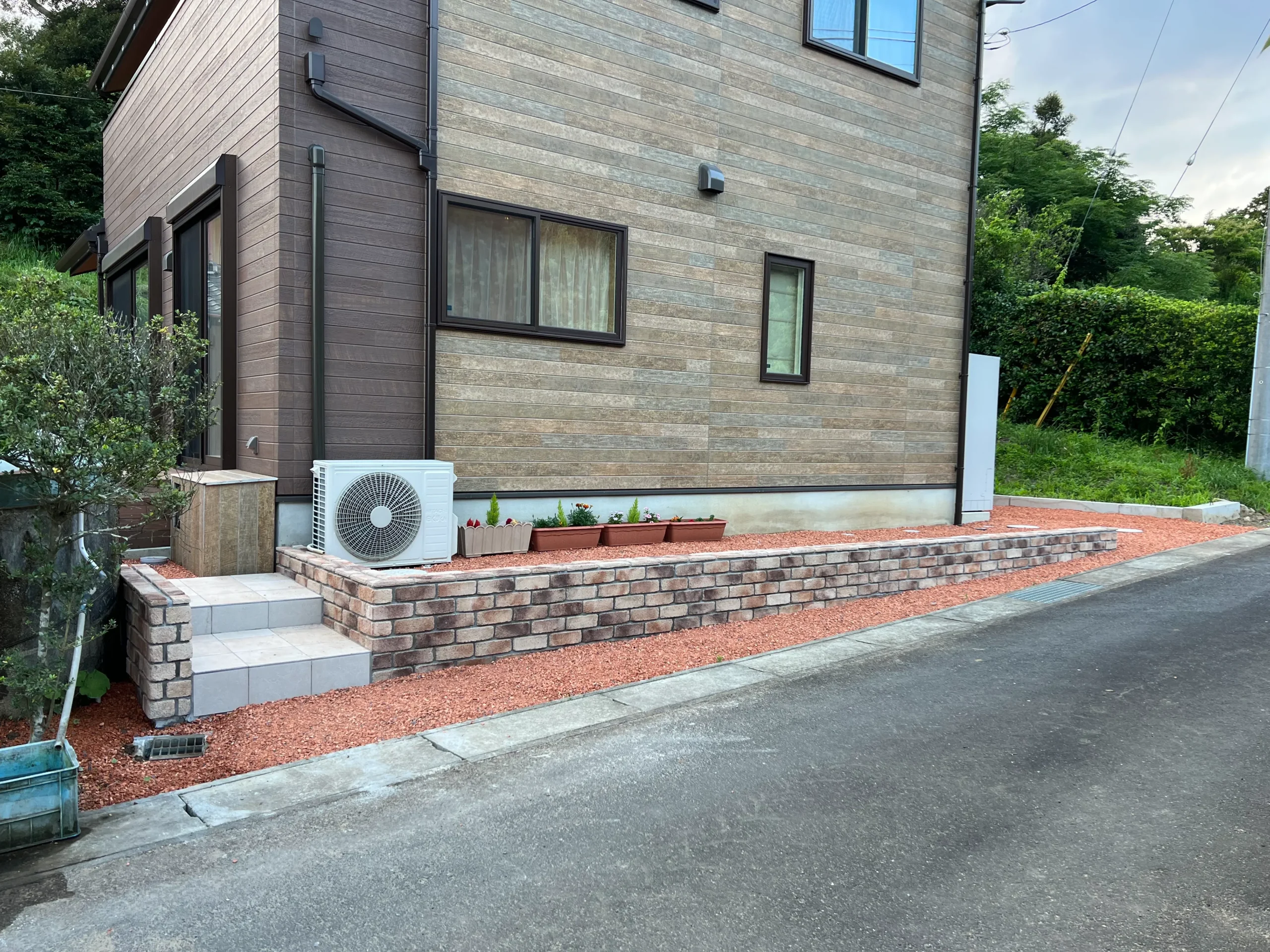外構工事では、お客様の暮らしに寄り添ったプランニングと美しい仕上がりにこだわり、解体工事では安全第一を徹底。さらに、環境に配慮した再利用素材として注目される「瓦チップ」の製造・販売も行っています。